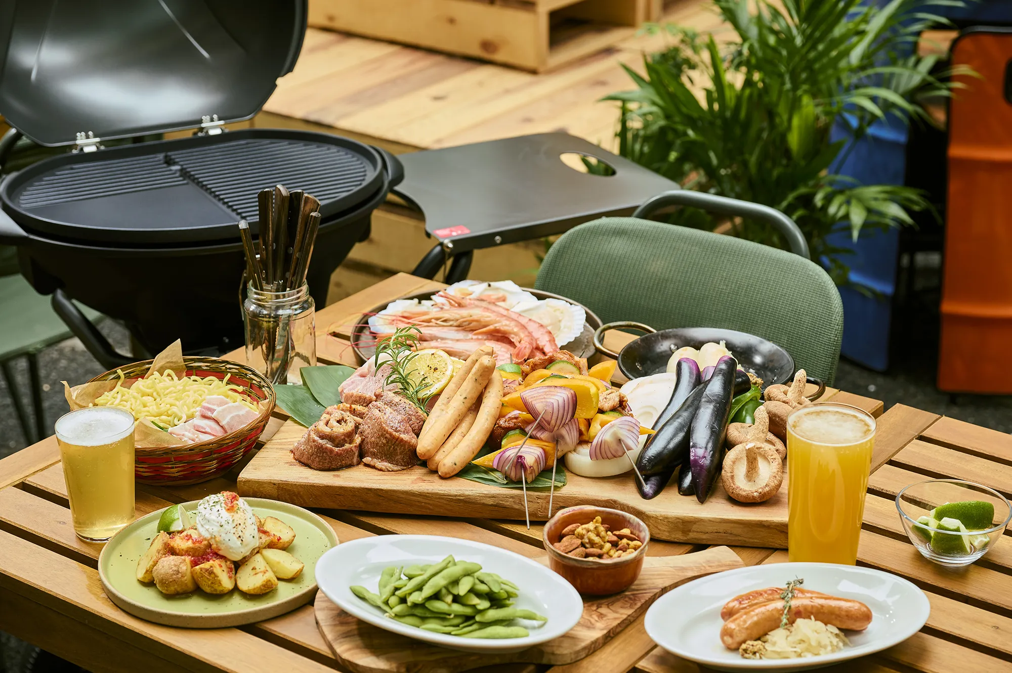 面倒な準備や片付けは一切不要。 厳選されたお肉と野菜、そして本格的なBBQグリルをご用意してお待ちしております。